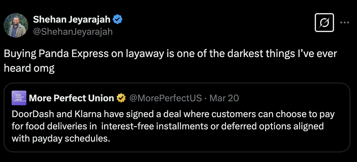 Because apparently, paying full price upfront for a burrito bowl was getting a little too intense, Klarna and DoorDash have teamed up to let you finance your fast food. That’s right—your late-night cheeseburger combo can now come with a payment plan. The internet, as expected, had a field day, flooding timelines with memes about folks taking out a 4-installment loan just to satisfy the munchies. From “Buy Now, Pay Later” jokes to people realizing their credit score might hinge on a Popeyes order, the reactions have been nothing short of chef’s kiss hilarious.