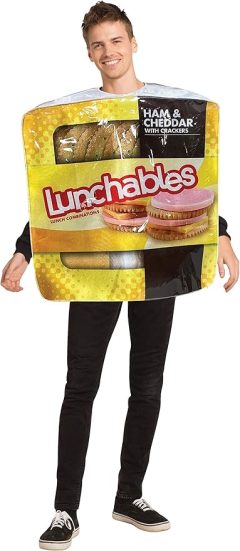 Growing up, the kid who had Lunchables was the cool one. The sight alone would inspire kids to hide their pb&j sandwich — the fourth one in a row. This Lunchables costume looks identical to the iconic container. It’s only missing giant-sized ingredients to make massive Lunchables.