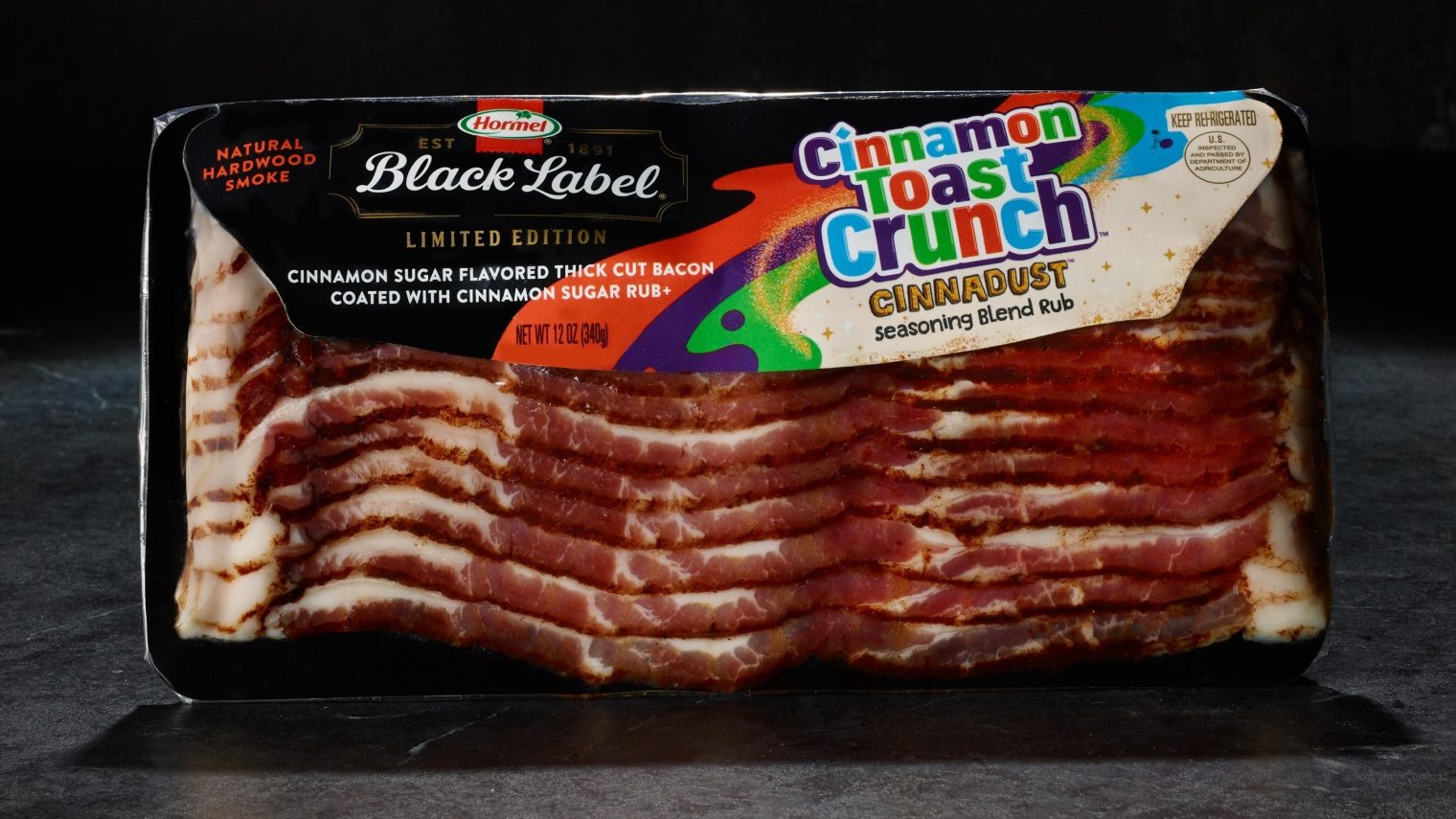 Designed for snacking or pairing at any time of day, this collaboration blends the boldness of Hormel Black Label Bacon with the nostalgic sweetness of Cinnamon Toast Crunch.
