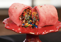 The burrito is made with cotton candy-flavored ice cream, Fruity Pebbles, Froot Loops, marshmallows, Skittles, mini M&M’s, gummy bears, and sprinkles, all wrapped in a cotton candy shell. Priced at $15, this food porn item is available in sections 222 and 247.