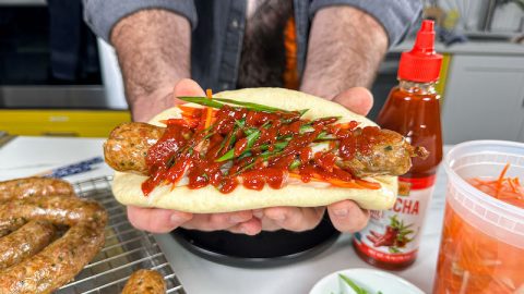 We Created A Sriracha Hot Dog That’s Got Dumpling Energy And Bao Bun Flair