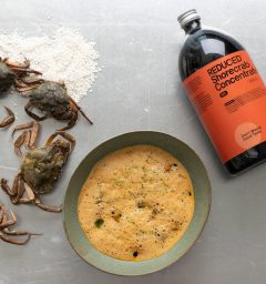 Shore crab is one flavor concentrate; a toasted, shellfish-forward umami that’s sweet and earthy. It was designed to pair well with soups, sauces, marinades, and pasta. There are also mushroom, vegetable, and chicken concentrates, along with variations. Reduced hopes to eventually offer them to consumers. Currently, samples are only available to industry and foodservice workers by request.