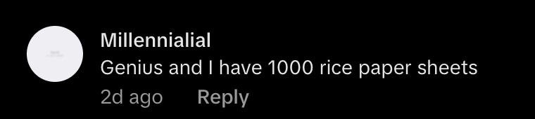 In her recent video, Day 13 of a 50-day series of meals, Minell showcases a croissant recipe that packs a mere 283 calories and a whopping 25 grams of protein. Using rice paper, she simply dips it in egg yoke cuts it into three pie slice shapes, then fills it with ham and shredded cheese.