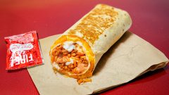 - Beefy Potato Loaded Griller – $2.49: Seasoned beef, crispy potato bites, nacho cheese sauce, creamy Chipotle Sauce, and reduced-fat sour cream, all wrapped up and grilled to eat on the go.