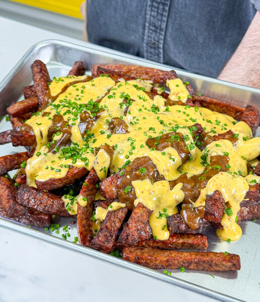 With the undeniable, quintessential hot dog being transformed into another crucial bite—French fries—we’re zooming past the ordinary, friends. Picture this: Sausage Fries drenched in Gumbo Gravy and decadent Creole Mustard Cheese Sauce. That lip twitch and sudden salivation you’re experiencing? It’s a sign that we’re truly on to something extraordinary.