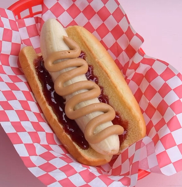 This Banana ‘Hot Dog’ PB&J Is Like A Snack Remix From An Alternate Universe