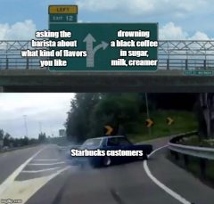 Milk/cream and sugar are not needed. Sometimes the reason your coffee tastes so bad is because it’s just not the right type. Not all black coffee is a bitter charcoal pit. This isn’t a one size fits all type of situation. Just like there are different flavors of tea, there are different roasts with varying characteristics. Experiment a little, baristas are there to help you with that. Don’t just say it’s gross and expect us to read your mind, tell us what flavors you’re into.