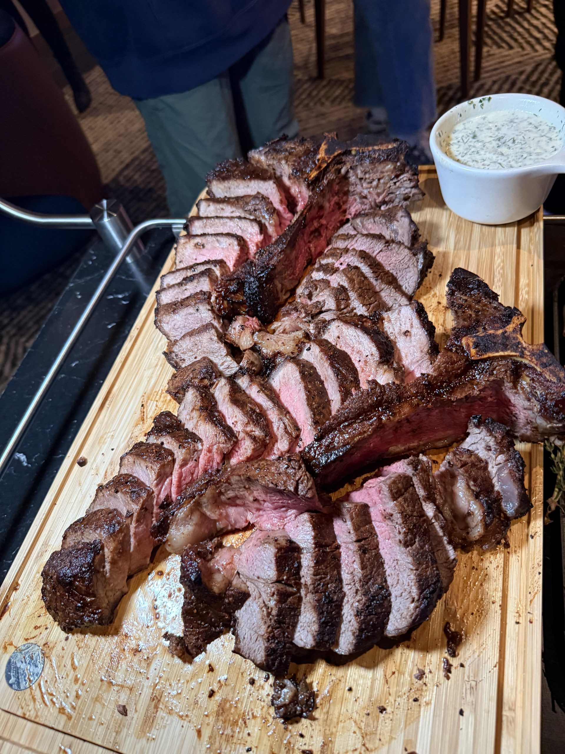 The lounges double down with things like edible cocktails (thing fancy jello shots) along with buffalo wings paired with Intuit Dome’s signature caviar ranch. That caviar ranch alone is worth the price of the ticket. Upstairs, the Teradata Halo Lofts send out a 28-day aged, coffee-crusted porterhouse from a carving cart and a spicy lobster hand roll cart that would fit right into a trendy LA counter-service spot.