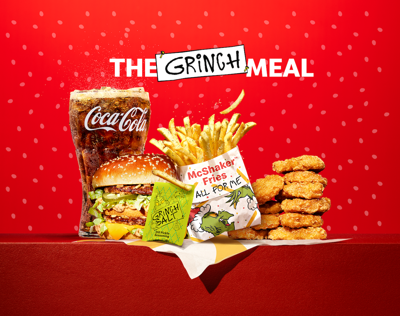 Starting December 2, select locations nationwide are rolling out The Grinch Meal, a collab with Dr. Seuss Enterprises that leans into mischief instead of mistletoe. The star of the whole thing? New Dill Pickle “Grinch Salt” McShaker Fries, a tangy, briny seasoning you toss onto the fries yourself. It’s the first time the U.S. is getting this flavor, and really, it’s surprising it took this long.