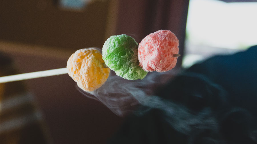 Upon arrival at Chocolate Chair, we were met with a treat that consisted of large Crunch Berry-like puffed snacks that were soaked in liquid nitrogen for a few minutes. The Dragon’s Breath is then served in a cup with a long sharpened stick, akin to the ones accompanying orders of popcorn chicken at your favorite local boba shop. The snack’s treatment with liquid nitrogen creates a hyper cold bite that when consumed, results in condensation forming in your mouth and creating the smoke effects to come out your nose and mouth. Because science.