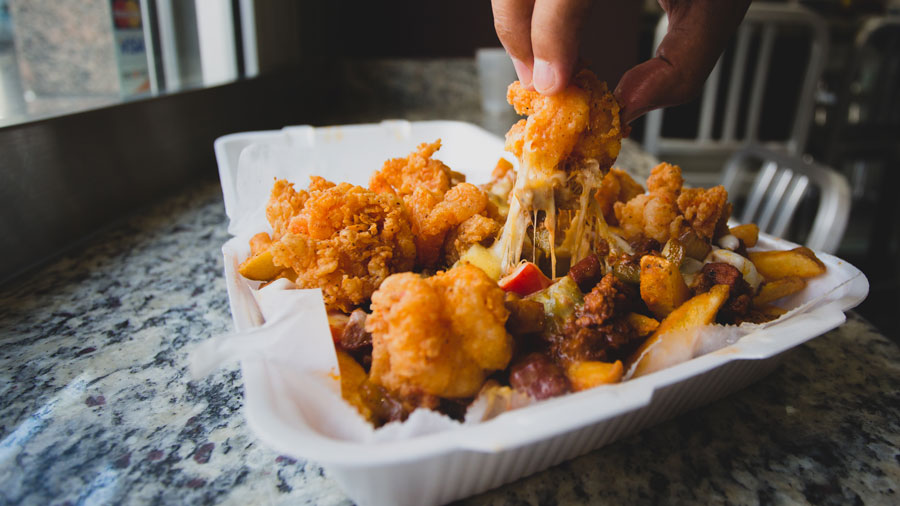 To know the legendary Chum Killer is to know three levels of gastric bliss: the first, crispy french fries steeped in ground beef, spicy sausage, savory gravy and fiery Cajun spices; the second, velvety cheese, melted right over said fries creating a glorious, oozing buffer between the fries and the third and final level made up of golden, succulent fried shrimp crowning its entire majesty.