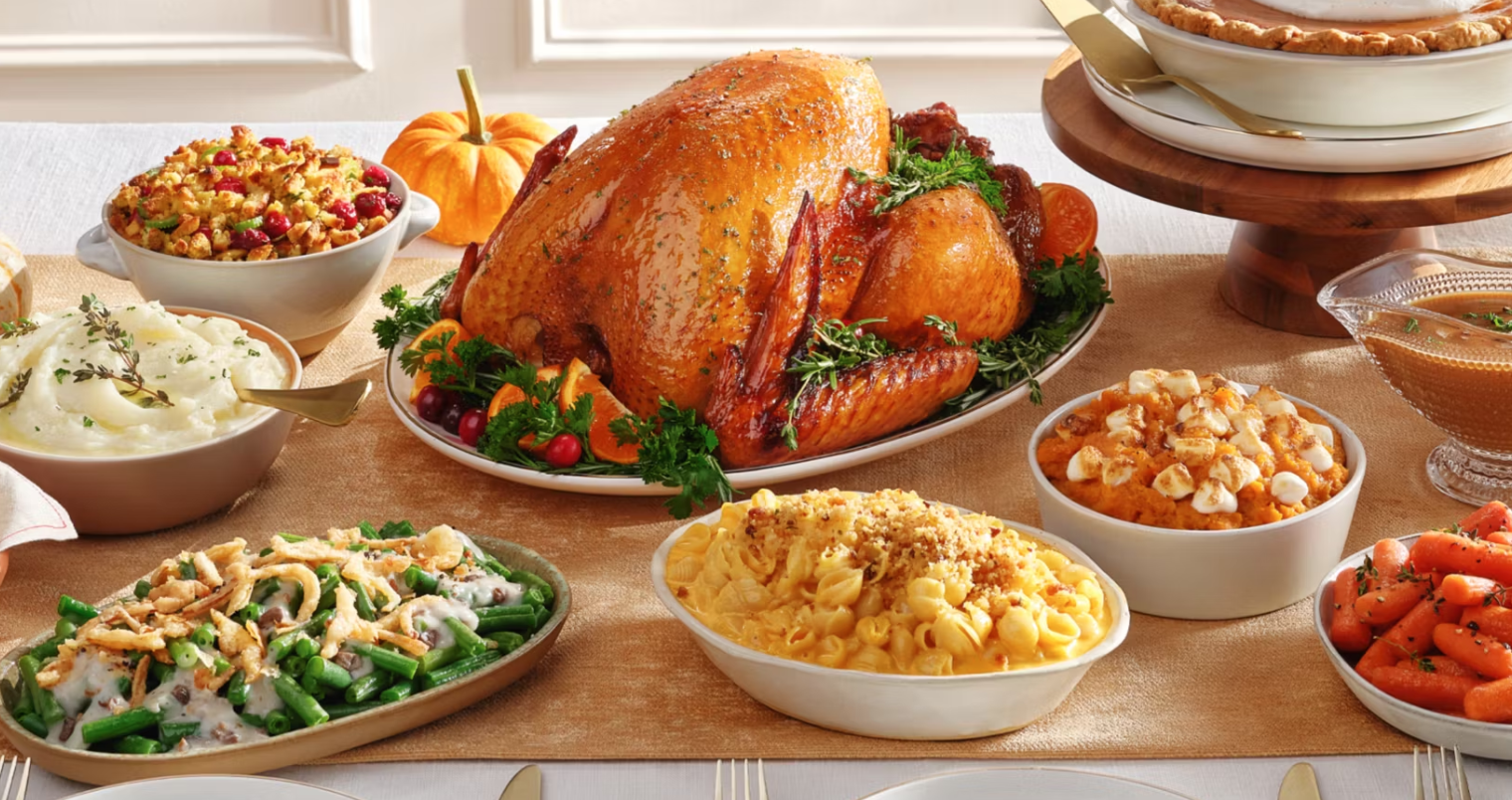“*Price assumes a purchase of ingredients for a meal for 10 people, including a 14lb Jennie-O® turkey, rolls, cranberry sauce, mac & cheese, mashed potatoes & gravy, sweet potato casserole, green bean casserole, stuffing & pumpkin pie. Based on prices effective 10/15/25 – 12/24/25. Actual price will vary based on available products and your selections.”