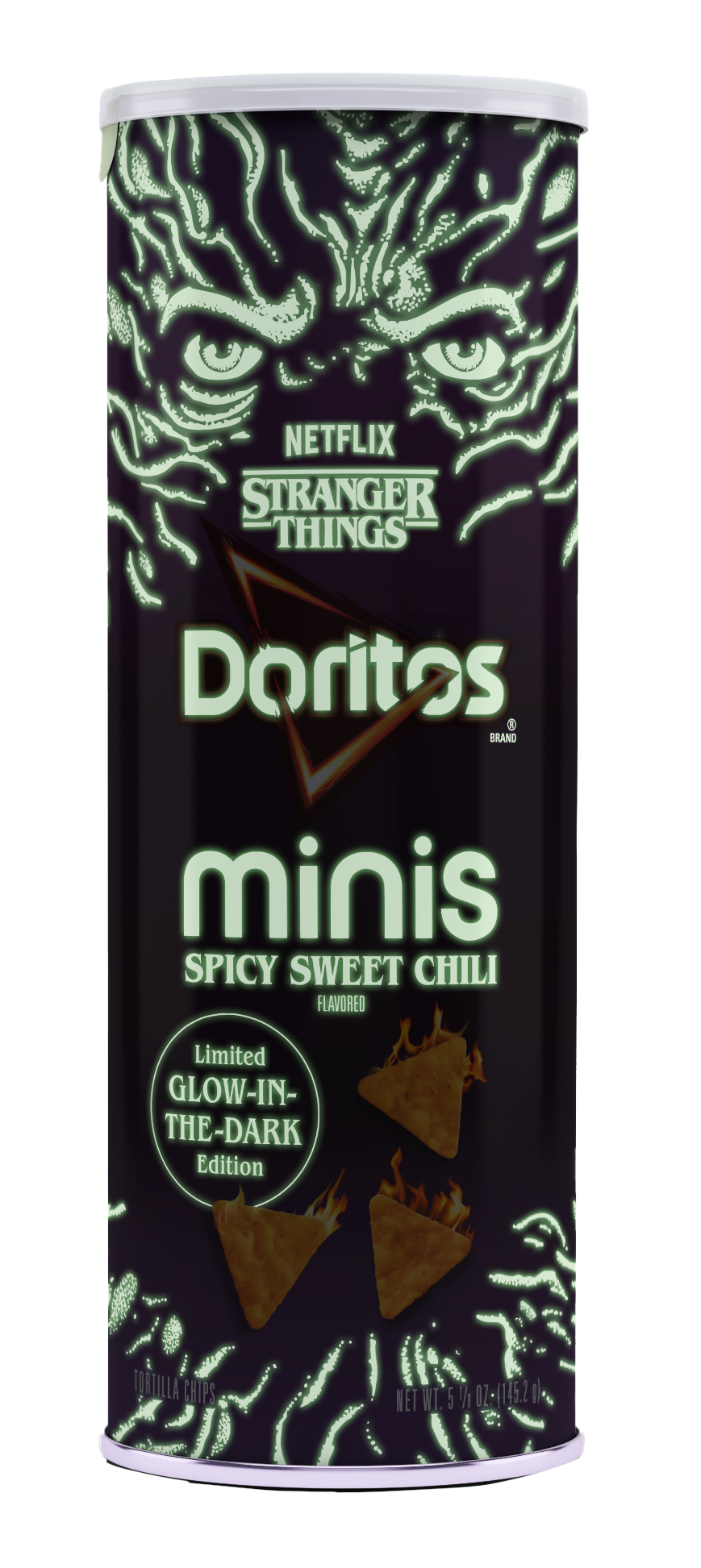 Now on store shelves, Doritos drops: Stranger Pizza x Cool Ranch and Doritos Minis Glow in the Dark Spicy Sweet Chili.