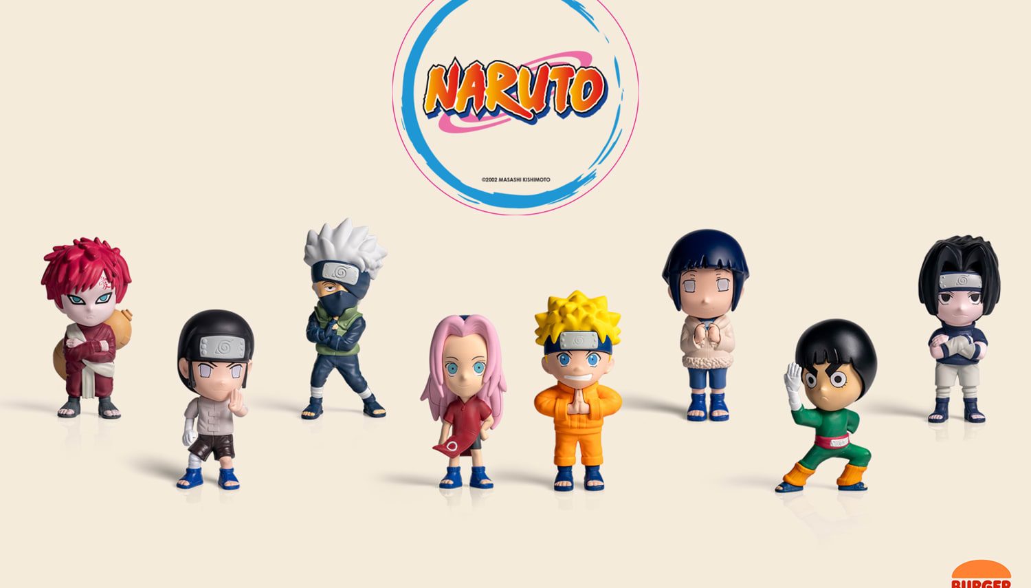 At participating Burger King locations nationwide, King Jr. meals will come with a random chibi figurine of one of eight characters from the anime: Gaara, Neji, Kakashi, Sakura, Naruto, Hinata, Rock Lee, and Sasuke.
