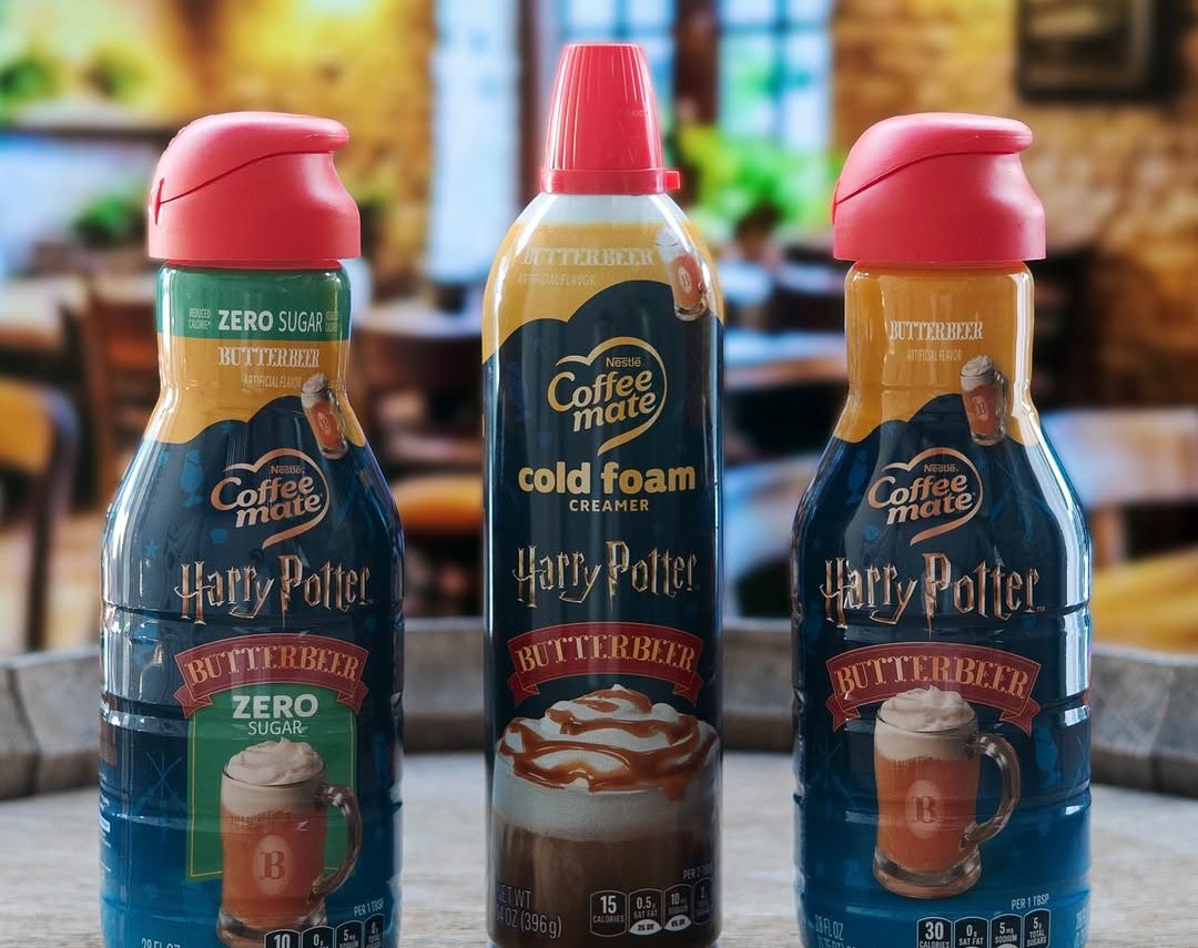 Potter fans are all too familiar with butterbeer, the slightly alcoholic beverage that gives Hogwarts students a magical buzz. You can now experience the frothy blend of cream soda and butterscotch in three Coffee mate products: Butterbeer creamer, Butterbeer zero-sugar creamer, and Butterbeer cold foam.