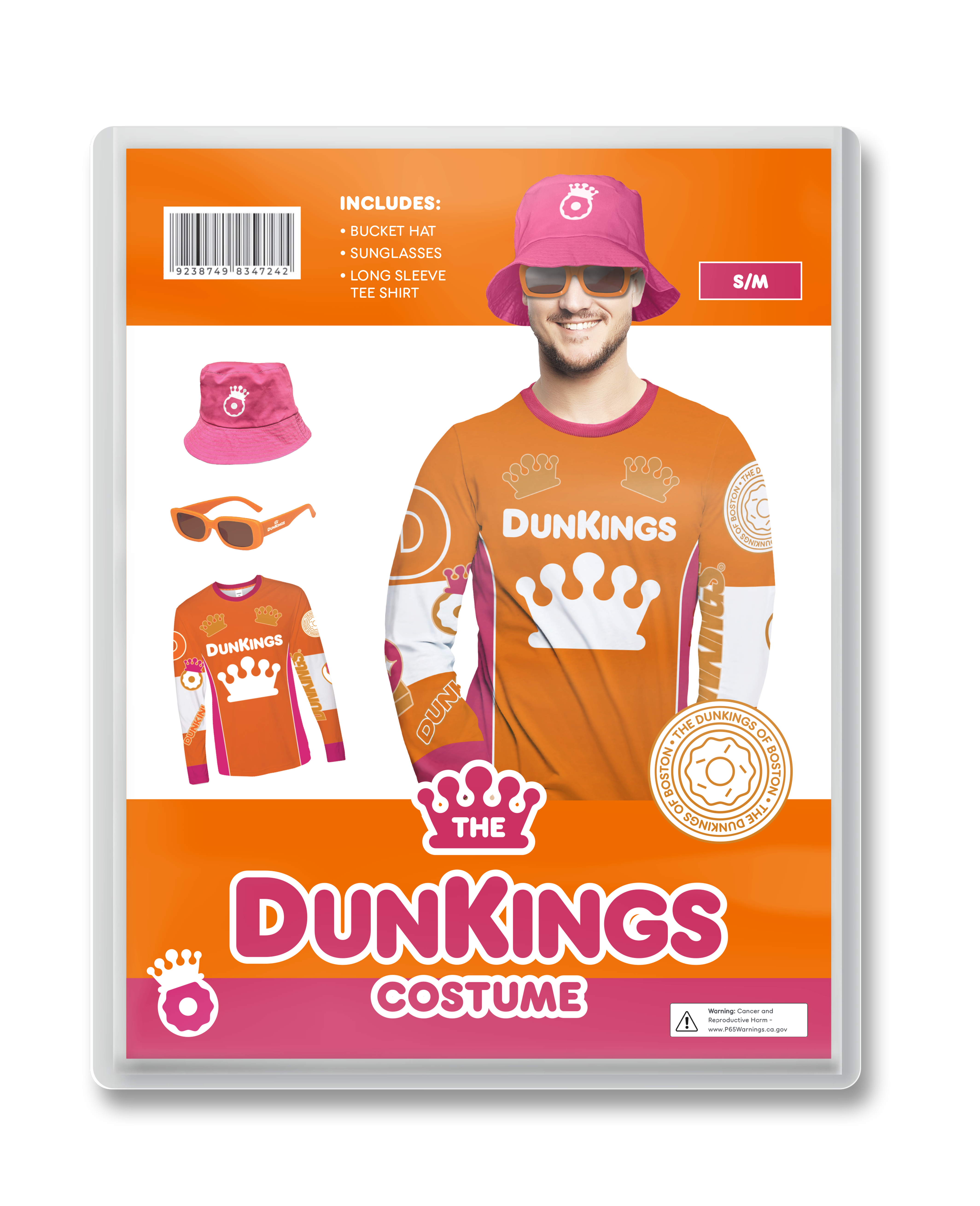 The DunKings Tracksuits original jacket ($60) and pants ($60) are sold separately. The new DunKids Tracksuits are sold as a set ($80). For those who aren’t ready to fully commit to the bit, the new DunKings costume set ($44.99) includes a long-sleeve jersey shirt, bucket hat, and sunglasses.