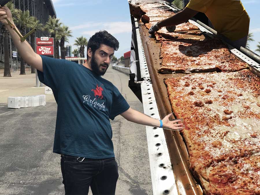 This past Saturday, pizza history was indeed made in California. After renting out the outer border of the Auto Club Speedway in Fontana, California, a group of pizza artisans had flown in from around the world to construct a new world record pizza, one that measured a tongue-wagging 6,331 feet long.