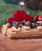 Churro dusted with cinnamon sugar and coffee, drizzled with coffee chip cream cheese frosting, and topped with chocolate pieces. (New)