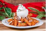 Cinnamon sugar-dusted with caramel drizzle, vanilla ice cream, whipped topping, holiday sprinkles, and crushed TWIX cookie bar pieces. (New)