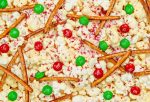 White chocolate-flavored popcorn with pretzel sticks, assorted M&M’S Milk Chocolate Candies, and crushed peppermint. (New)