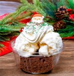 Gingerbread cake with vanilla ice cream, whipped cream, holiday sprinkles, and garnish. (New)