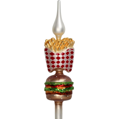 Swap out the usual star or angel for a cheeseburger and fries tree topper that’s anything but ordinary. This quirky design looks like a double-decker burger stacked with fries and skewered by a silver spear, striking a balance between whimsical and indulgent. Whether you’re embracing your inner foodie or adding a touch of fun to your holiday décor, this tasty duo is the perfect crowning piece for your Christmas tree.