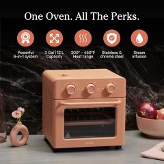 The Wonder Oven from Our Place isn’t just an oven—it’s your kitchen’s new best friend. This 6-in-1 marvel does it all: air fries, toasts, roasts, bakes, reheats, and broils, with a little steam infusion magic to keep your food juicy and packed with flavor. Forget waiting around—this oven preheats 75% faster and cooks 30% quicker than your old one. It’s got the chops to roast a 4.5-pound chicken or double the capacity of a regular air fryer, all while keeping your counter sleek and stylish. Who knew efficiency could look this good?