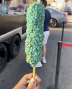 The burrito is made with cotton candy-flavored ice cream, Fruity Pebbles, Froot Loops, marshmallows, Skittles, mini M&M’s, gummy bears, and sprinkles, all wrapped in a cotton candy shell. Priced at $15, this food porn item is available in sections 222 and 247.