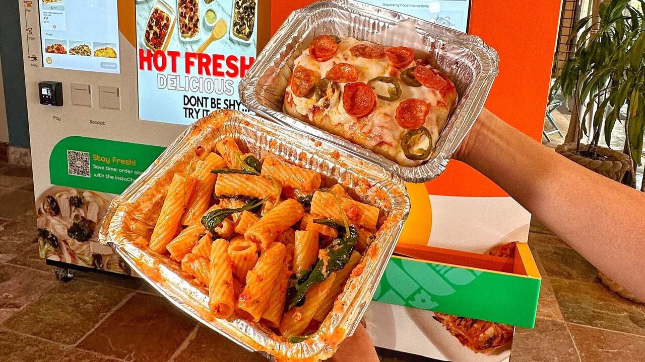 “It’s an experience to go up to a vending machine and have a hot meal come out from it,” instaChef’s head chef Brent Omeste said while prepping a batch of par-cooked fettucine.