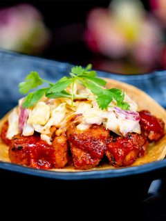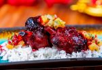 Find these sweet and savory shanks at Bamboo Blessings, available from Jan. 17 to Feb. 16. They come atop a bed of rice, crowned with pineapple chutney.