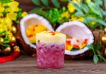 Also available at Bamboo Blessings with the Sip and Savor pass, this fruity cocktail infusion includes dragonberry rum, white rum, lychee purée, dragon fruit and Chinese five-spice syrups, lime juice, and house-made coriander tea garnished with a dried dragon fruit wheel.