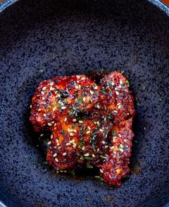 Red Dragon Spice Traders turns up the heat with another peppery treat. The Spicy Gochujang Chicken Tacos come dressed with tangy yuja citrus cabbage slaw — a perfect blend of refreshing kick.