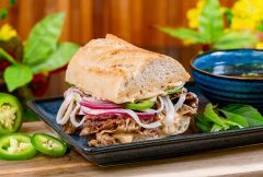 At Wrapped with Love, wrap your hands around the new Phở Dip sammie. It comes loaded with rice noodles, sliced beef, shaved jalapeños, pickled onions, and delicious Phở broth for dunking.